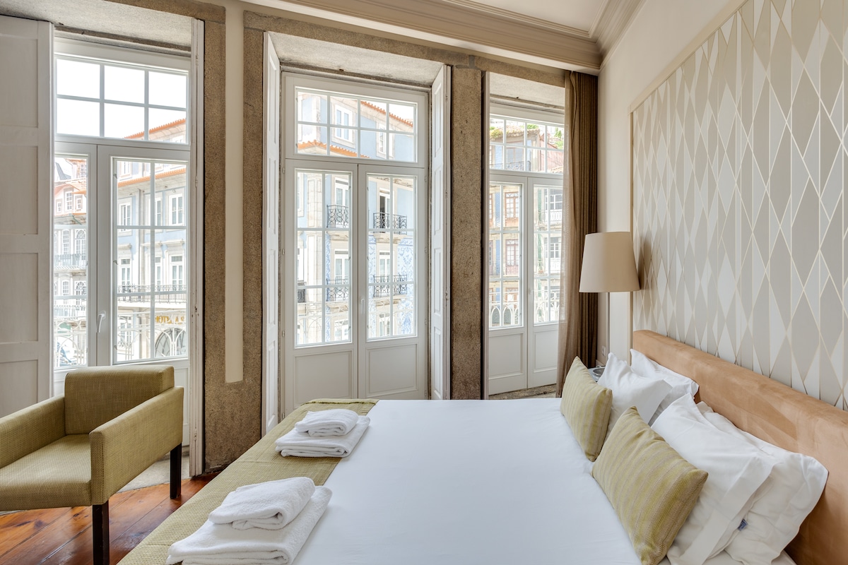 Fabulous premium 1 bedroom apartment with balcony located in the trendiest neighbourhood of Porto's historical city center, between Ribeira and São Bento. NEIGHBORHOOD * Largo São Domingos * Ribeira * São Bento Train Station * Many trendy Restaurants & Bars * Historical and cultural area APARTMENT * 1st floor - no elevator * Balcony * Wi-Fi * Cable TV * Dining table w/ 4 chairs * Bathroom with bath and hand towels * 1 queen-size bed 160x200 + 1 Double sofa bed