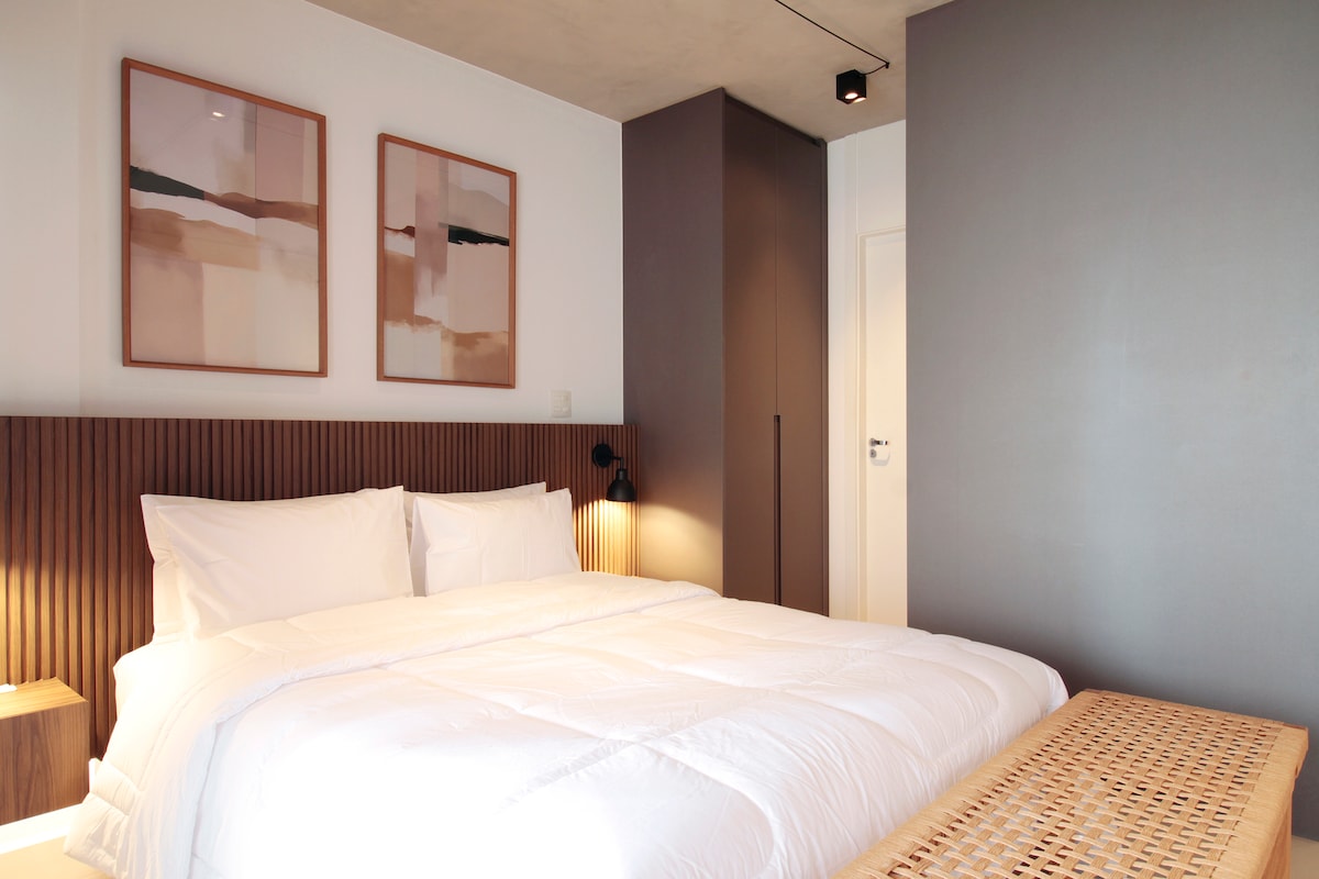 Welcome and make yourselves at home. The apartment is brand new, designed especially for you and has impeccable decor, very practical for everyday life. The view is spectacular! The apartment is on the 28th floor. We are in an excellent location in São Paulo, in the Pinheiros neighborhood, with restaurants, supermarkets and bakeries very close by. It's 40m2 (430 sqft) with 1 bedroom and 1 bathroom. Walking distance from Fradique Coutinho subway station (just 2 blocks).