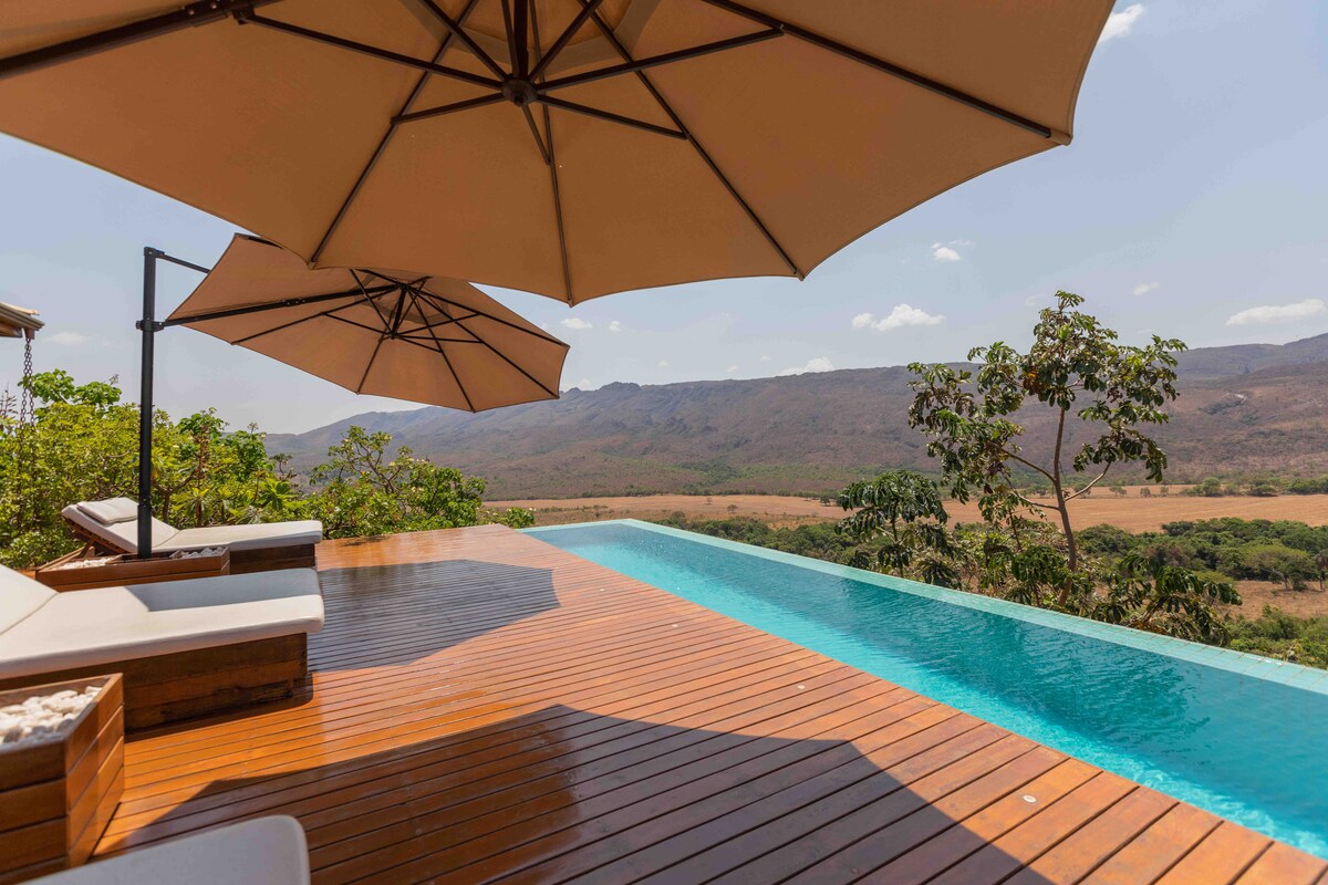 Master Suite at Zandaia Eco Pousada. Impeccable and cozy decor. Details that make a difference. Everything was designed to surprise our guests. The master suite features a wine cellar, minibar, Smart TV, Closet, balcony and a suspended deck with a private Jacuzzi with a breathtaking view. Come and experience unforgettable moments with the best view of Serra da Canastra!