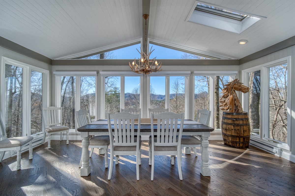 3 Bedrooms, 2 Baths, Sleeps 6-8 Enjoy phenomenal, long-range mountain and lake views all the way to South Carolina from the expansive windows and covered back deck of this high elevation, one-level, three-bedroom, two-bath home. Open floor plan, stone fireplace, wood flooring, granite countertops, garage, and natural light. Full resort amenities such as golf, tennis, indoor and outdoor pool and hot tubs, lake, waterfalls, weight room, and skiing. Vibrant mountain dining and shopping!