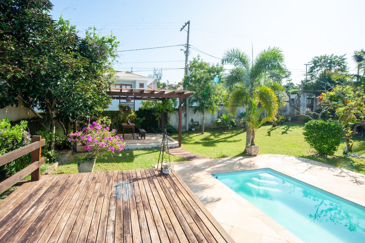 Disconnect from the busy day-to-day and come enjoy a few days with family or friends at our ranch with a swimming pool and barbecue area inside a large yard for the exclusive use of guests It is a 15-minute drive from downtown Saquarema and the best beaches the city has to offer. The ranch has a main house for reservations of up to 5 people and a small house that will be available for groups of 6 people or more. Note: We rent the place for parties and events as well.