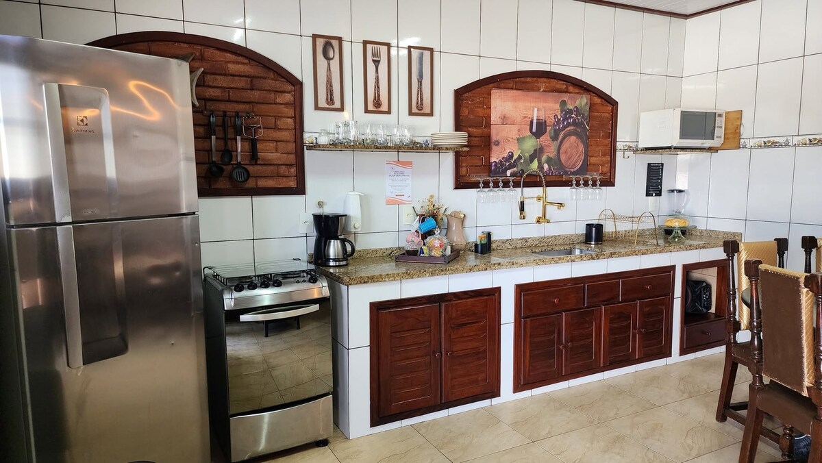 Amazing area with 2 houses for your comfort. House 1 with 2 bedrooms, living room, kitchen and bathroom and the other with 1 bedroom, living room, kitchen and bathroom, garage for 4 cars. The houses are all equipped with all the necessary utensils for your stay and fun, such as smart TVs, soccer balls, volleyball, pool, cards, dominoes and karaoke. Equipped kitchen. Space with gourmet area, swimming pool, floor fireplace and mini lawn field. Located one block from the beach and close to the reserve.
