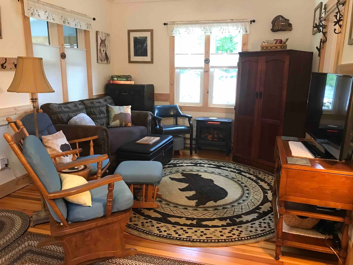 Year Round Waterfront Cabin-Secluded-Private Dock *Brand New Hot Tub on the River* 5 star cleanliness rating 3 bedrooms-3queen beds with Casper mattresses Hotel cot can be placed in any room Pull out sofa All fresh pillows, comforters, mattress pads, linens for each reservation 100% cotton sheets, towels 20 minutes to Saratoga and Lake George An oasis for year round fun Beautiful deck, fire pit, private dock-kayak + canoe provided Central air, heat, and a cozy fireplace $100 per dog