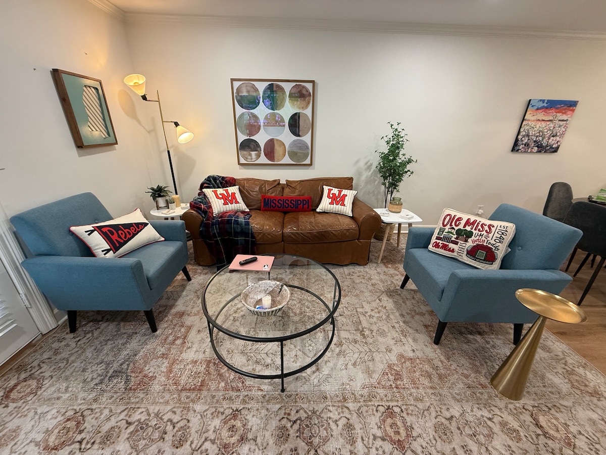 ♦️About The Loft ♦️ The Rebel Loft offers a true Oxford experience for guests looking to unwind & relax. It provides a mix of Southern hospitality and elegance with the necessary amenities for a comfortable Ole Miss stay! One mile from The Square and 0.9 miles from campus, this is a perfect location for all Ole Miss activities. The walk to The Square is scenic adventure of historic Southern homes. The Rebel Loft is the perfect spot to unwind from the hustle & bustle of Ole Miss activities.