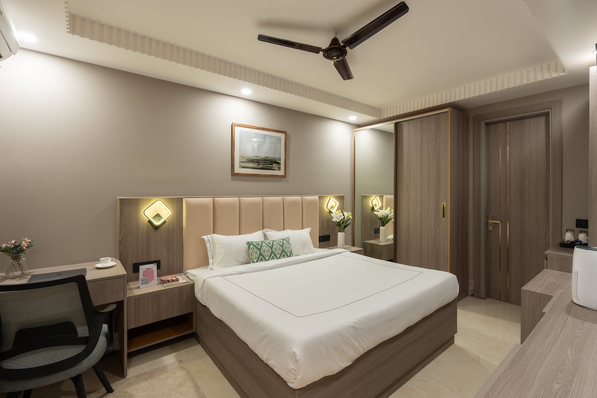 ◆Located in a prime area on Golf Course Road, Gurugram, ideal for both business & leisure travelers. ◆Just 21 minutes from IGI Airport. ◆35 minutes from Yashobhoomi Convention Centre. ◆Close to Max Hospital (3.4 Km) and Fortis Memorial Research Institute (3.2 Km). ◆On-site restaurant and banquet hall for dining and events. ◆Bedroom with Forest View. ◆Fully-serviced suite for a comfortable and convenient stay.