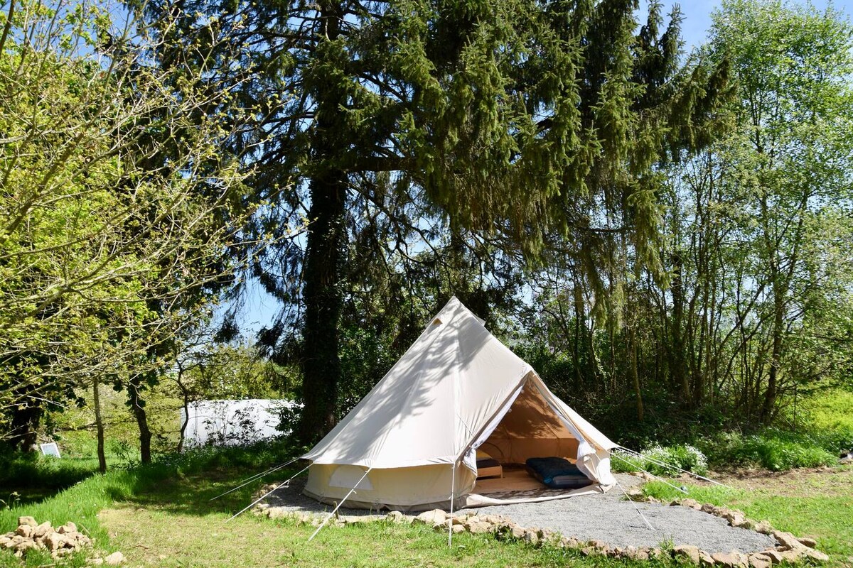 A breathtaking view overlooking the Loir Valley. Enjoy the calm of the countryside, the singing of birds and let yourself be enveloped by nature... A tent, yes! But with a real solid wood bed, a comfortable mattress and also a country bathroom (sink, solar shower and dry toilet). Perfect for a romantic weekend, a need to disconnect, a desire for calm, a return to nature, a foretaste of wild life...
