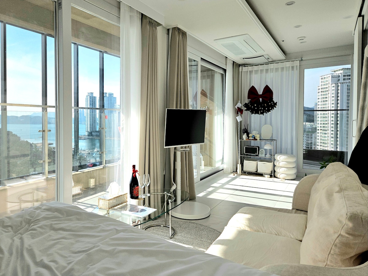 š¬Delfino Cove houseš¬ Haeundae Wave 28th floor penthouse with a total of 3 private terraces and 2 rooms, all with full windows, you can fully enjoy the sea and sky in front of you. Even the coziness of hotel-class bedding that you can feel as soon as you relax. Haeundae Wave will accompany you so that your trip can be deeper and more beautiful in a delicately prepared space. ā¤ļøHaeundae Wave x Yacht Ride x Landeja Viewā¤ļø 1. 20% discount on all menu items at Rendezvous CafĆ© 2. The Bay 101 Yacht Rental Yacht Tour All Routes 20% Discount This is a special affiliate benefit for Haeundae Wave customers š¤ Location Information * 5-minute walk to Haeundae white sand beach * 7 minutes on foot from Haeundae Station * Free parking / electric car charging station (free parking available, but if full, use the outside parking lot) * Convenient to Haeundae & Gwangalli