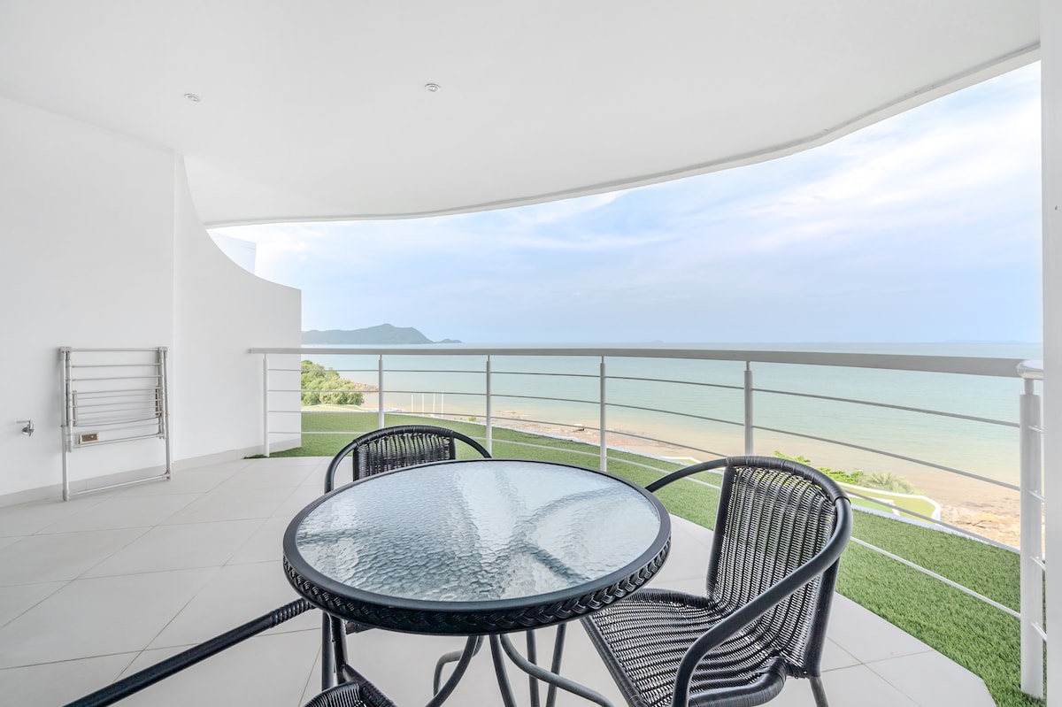 Escape to this stylish 1-bedroom condominium at Veranda Residence Pattaya, located directly on Na Jomtien Beach. Enjoy breathtaking sea views from your private balcony in this luxurious beachfront unit, seamlessly connected to the 5-star Veranda Resort, managed by the Sofitel Hotel & Resort Group. You're just a short walk from Pattaya's most famous seafood spots, including Pupen and Uncle Sawai Seafood—ideal for authentic dining by the sea.