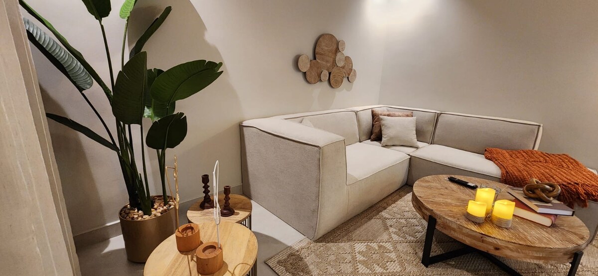 Latina (an apartment) has 2 bedrooms, 3 bathrooms, Andalusian room, a Saudi traditional room, 2 outdoor places (patios). ◾️Alharam is 10-15 minutes away by car. ◾️The nearest grocery store and laundry place is 1 min walking distance. لاتينا (شقة وليس شاليه) يضم غرفتين نوم ومجلس على الطراز الاندلسي ومجلس تراثي سعودي وجلستين خارجية ومغاسل خدمة ودورات مياه. يبعد المسجد النبوي ١٠-١٥ دقيقة بالسيارة. اقرب بقالة ومغسلة ١ دقيقة مشيًا