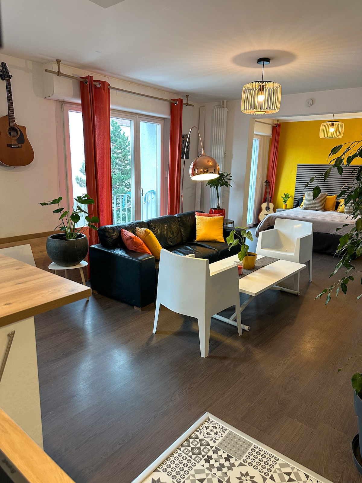 Here you will find a peaceful haven that allows you to recharge your batteries to fully enjoy the many activities offered by Nancy and its surroundings. Bathed in light, this contemporary 40 m² living space is located in a green setting in the center of Essey-lès-Nancy, Nancy's first ring road, five minutes from public transport serving the city center in 10 minutes.