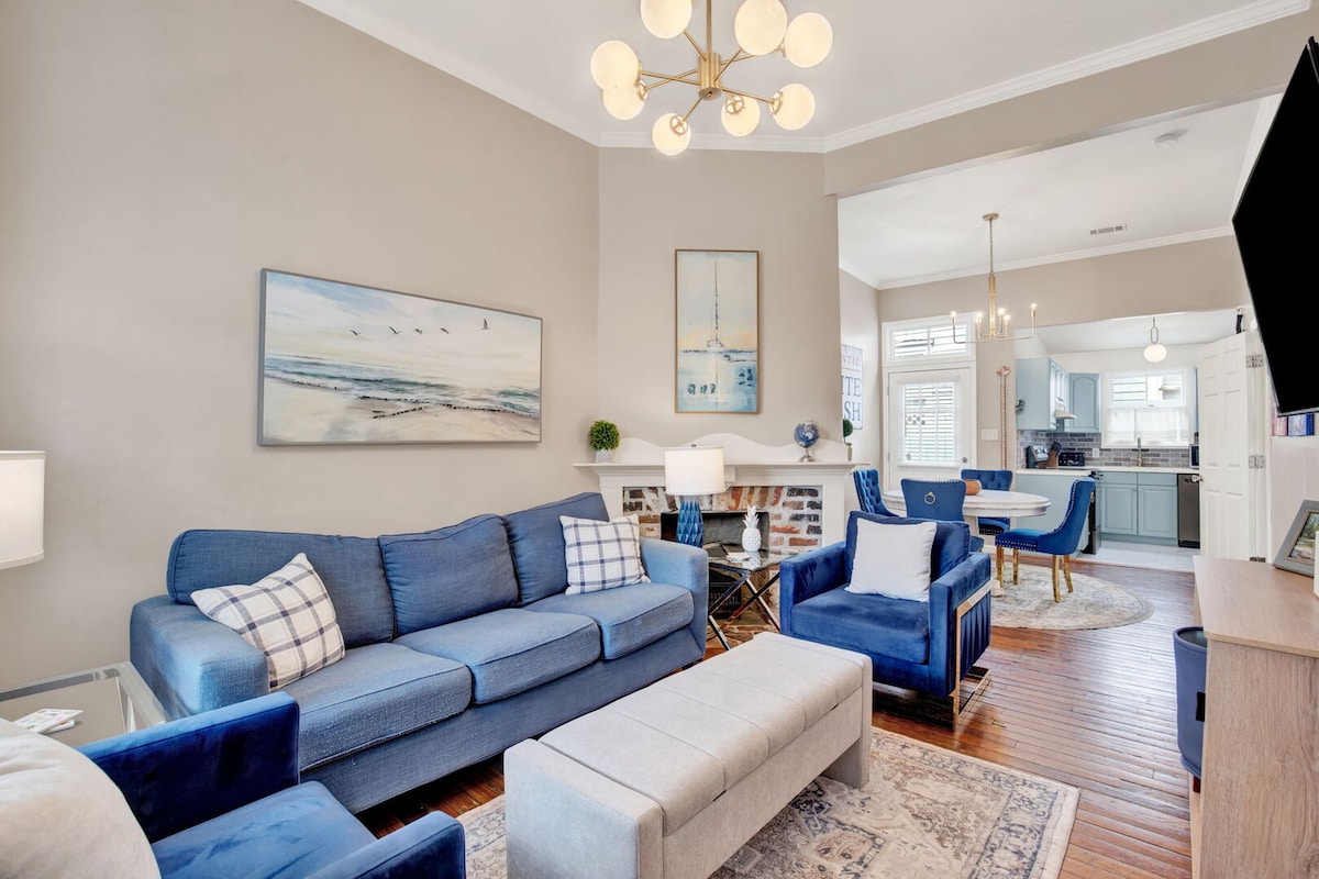 Jingle Bells Square Cottage is a charming 1885 carriage house tucked behind the main home in Savannah’s Historic District, just steps from Troup Square. Thoughtfully renovated to preserve its historic character, this cozy retreat features a working fireplace and a peaceful setting, all within easy walking distance to top restaurants, shops, historic squares, and iconic Savannah attractions. City of Savannah Registered | SVR-00032 | Minimum rental age: 25