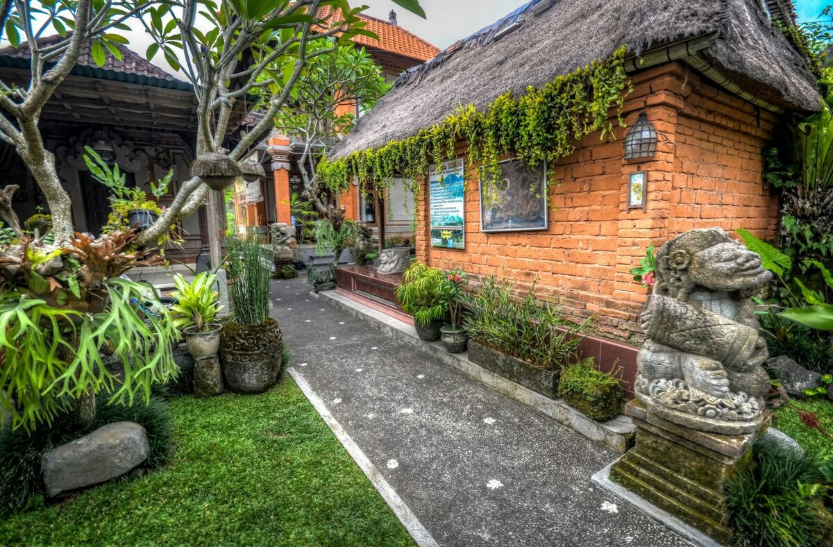 Our spacious and comfortable rooms have a queen-sized bed and provide hot and cold shower,wifi access,fan and Airconditioner . Breakfast is included. We are located just 700m away from Monkey Forest and a 10 minute walk away from Ubud center. Im also provide taxi service for pick up,drop off,day trips around Ubud: Rice terrace Holy water temple Coffee plantation Waterfall Elephant cave temple Sunrise trekking Water rafting Cycling tour Cooking class Etc Please asking me for more information:)