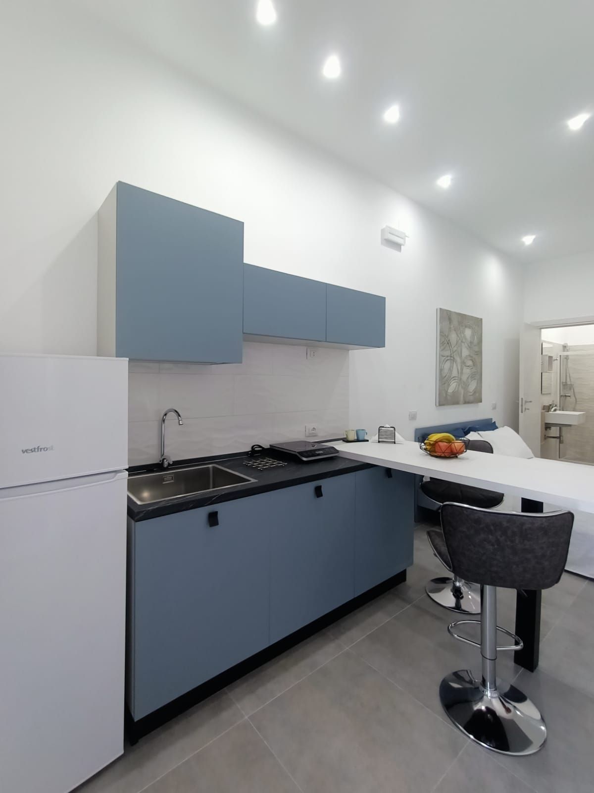 Apartment of about 40 square meters; it has a comfortable double bedroom and a large living room. Ideal for couples or families with small children who can use the front internal courtyard of the structure equipped with sofas and comfortable seats. The apartment has a kitchen and living room with a TV with a comfortable living area with a sofa that can accommodate two comfortable single beds. The apartment is located on the ground floor of our building and is equipped with bedding and bath linens.