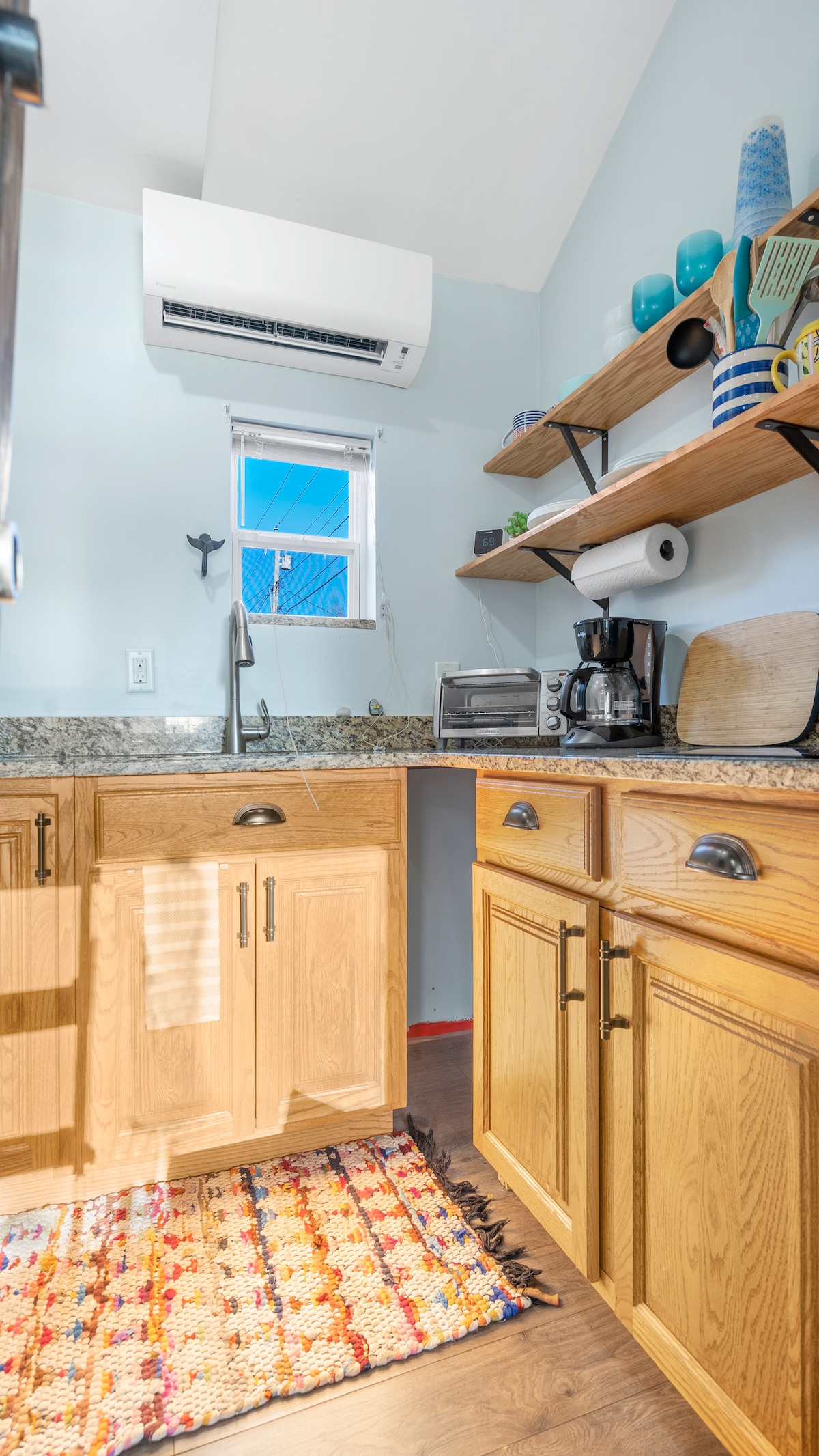 Comfy condo with lofted bed across the street from Maine's beautiful Pine Point beach. Private entrance with one on-site parking spot. Queen bed in lofted area, efficient kitchen area with fridge and convection microwave for preparing snacks and small meals. Wifi and TV equipped with a streaming device. Perfect for one or two people comfortable sharing an intimate space after returning from a day exploring our local trails, beaches, and restaurants.
