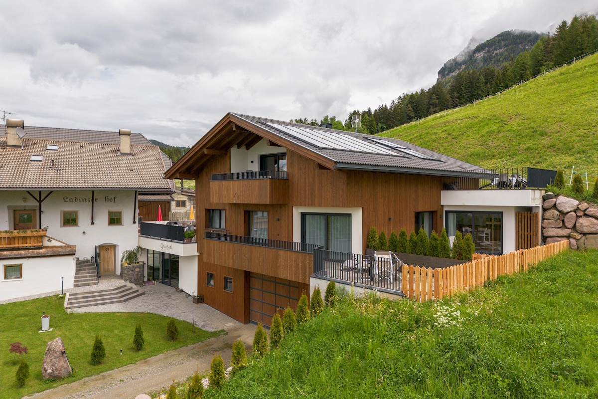 Completely new and stylishly furnished Alpine Chalet Aurora Dolomites is located in the mountain village of Lajen in a quiet and sunny location. Directly connected to meadows, fields and walking paths, you can enjoy the beautiful natural landscape of the Eisack Valley and the Val Gardena. The Alpine Chalet Aurora is equipped with its own open-air solarium or a large garden terrace, a dining area, some sun loungers and many playground equipment for children.