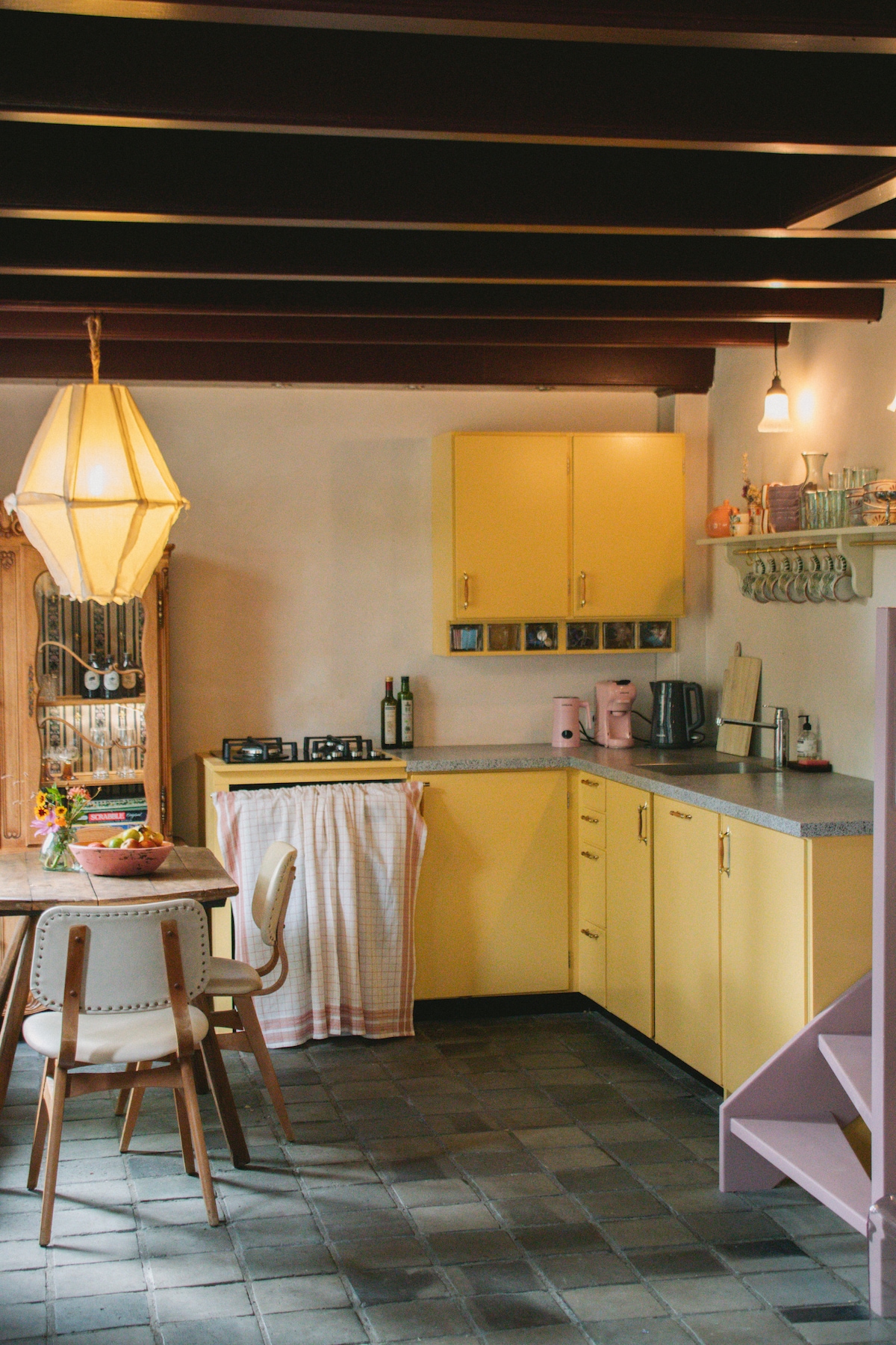 A special apartment with a mix of cool details and beautiful styling in the center of the picturesque Groede. The cozy sitting area and dining area are adjacent to a well-equipped kitchen with a large stove, dishwasher and other appliances. You can sleep in the cozy stylish bedroom with old details where the bathroom with rain shower is adjacent or on the loft where bedroom 2 is located.