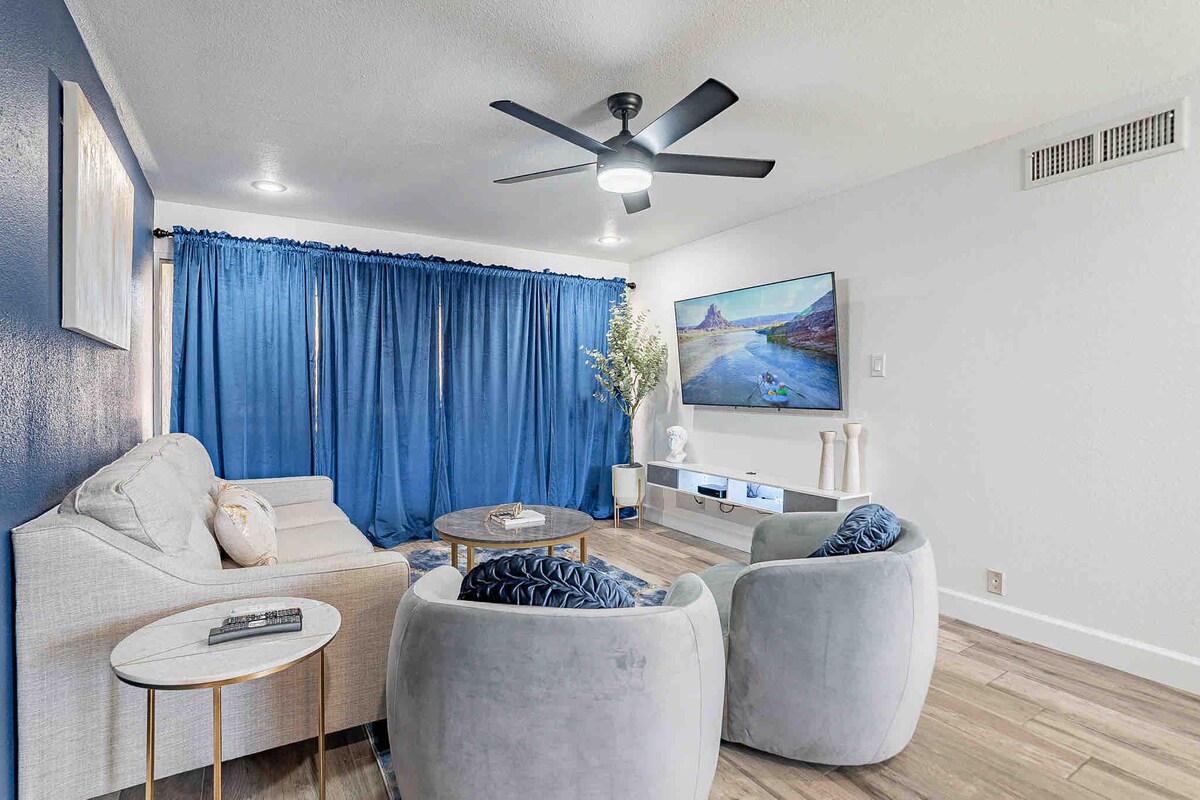 Enjoy Scottsdale without hassle! This one-bedroom condo is in the perfect location! You are walking distance to the hottest clubs and the best restaurants. The home is your eclectic designer space filled with stylish and comfortable furniture. Expect all of the entertainment you expect including Netflix and Sports. If you want to play music, just ask Alexa to play any song you’d like! Outside, the relaxing patio faces a large tree that gives lots of shaded sunlight throughout the year.