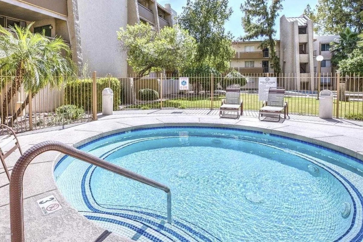 1 bedroom/1 bath condo located .7 miles of Old Town and less than 1 mile from Fashion Square Mall, San Francisco Giants Spring Training Field, and about 1/4 mile grocery store/restaurants and bars. Within 1.2 miles of 6 beautiful golf courses. Condo offers Wi-fi capable to handle multiple ‘work from home’ devices with complex amenities including a community pool and hot tub open and heated year round.