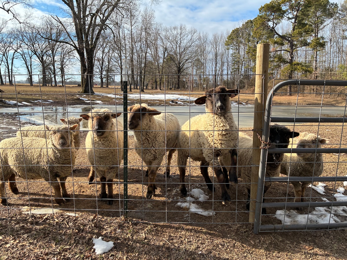 If you love to be greeted by friendly, nosy sheep then this is the place for you! Welcome to our little farm, we love when guests feel at home in our little farmhouse. Sit on the front porch with a cup of coffee while watching the sheep, goats, and horses graze. Sit on the back porch at night during the summertime and watch the beautiful fireflies! This is a place to relax and unwind from the the hustle and bustle while enjoying a little taste of farm life.