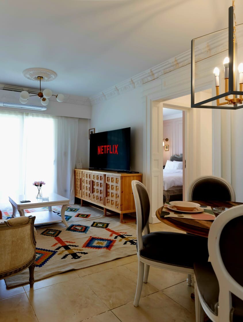 Our modern penthouse with a private pool is perfect for families seeking convenience and luxury. Located in a gated community in the upscale area of New Cairo, just 30 minutes from the airport, and close to amenities like KFC, Starbucks, and a variety of Western and local restaurants (Chili's, Fuddruckers, LongHorn Texas, Ibn Al Sham). Amenities like a King Bed, washer, dryer, dishwasher, and microwave ensure comfort, and 4 smart TVs provide entertainment.