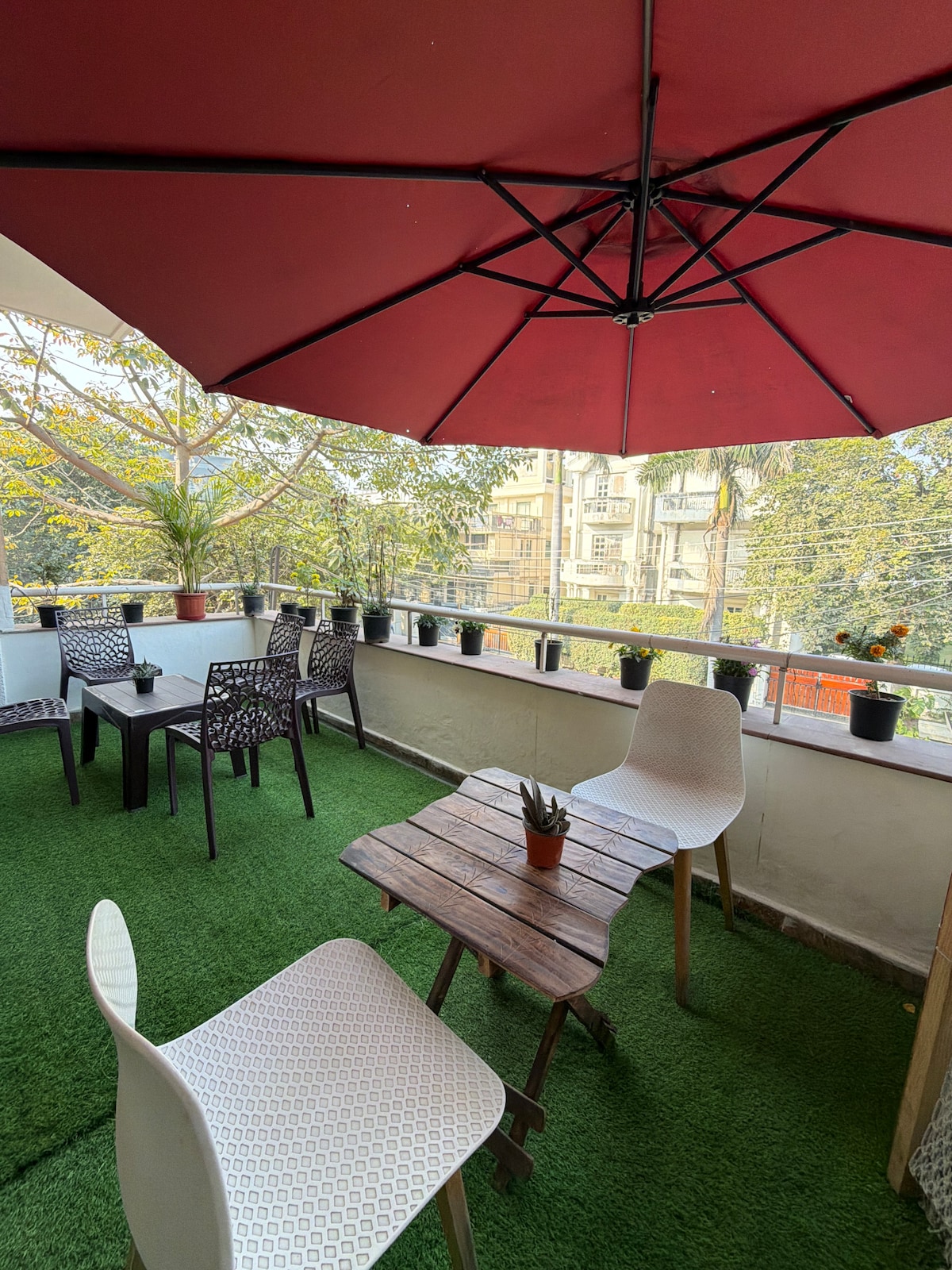 Welcome to our spacious studio apartment near airport with a balcony overlooking a lush garden. The flat design combines the bedroom, living area, and kitchen into one cozy, inviting space. The balcony offers a perfect spot to relax with a garden view. Sunlight streams in, making it a bright and comfortable retreat. The fully equipped kitchen adds convenience. AC is provided in both living and bed room to keep you cool. Enjoy your stay with privacy, dedicated workspace and high speed internet