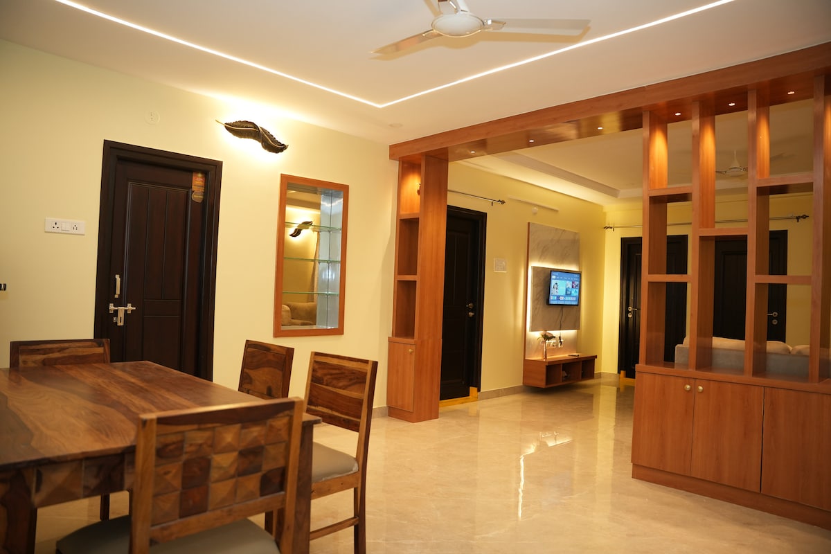 Welcome to our stylish 3 BHK apartment, ideal for short or long stays. Enjoy 3 AC bedrooms with attached baths, a cozy living room with a 43" Smart TV, high-speed Wi-Fi, and an indoor swing. The fully equipped kitchen includes a gas stove, microwave, RO purifier, fridge, and utensils. Conveniently located near Hitech City Metro, Usha Malpuri's Kitchen (100 m), US Visa Center (1 km), Cable Bridge, and major IT hubs..