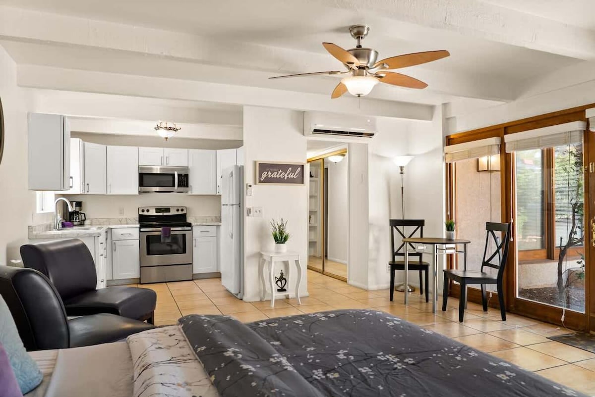 Welcome to The Comfy Cactus, our tranquil one-bedroom vacation home tucked away just a block from the vibrant heart of West Sedona, The Comfy Cactus is surrounded by coffeehouses, restaurants, and hiking trails. You can walk to a park, a trail head, a grocery store, or a movie theater (or two). Or, if you’re like us, try a closer trek to the Coffee Pot Restaurant for breakfast. Whether you're here for adventure or a peaceful retreat, we hope you'll fall in love with our newly renovated hideaway.