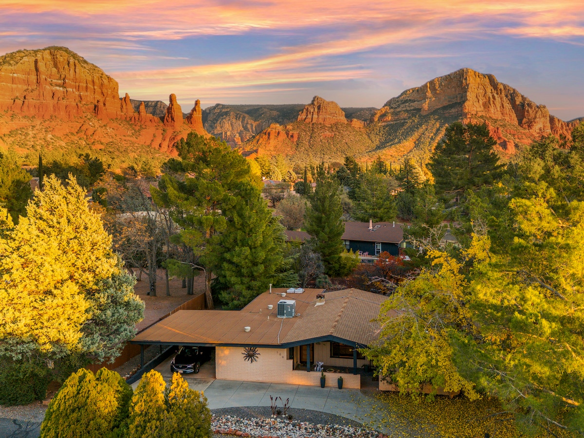 Escape your worries and unwind with your loved ones in this stunning 4 bed, 3 bath home that offers breathtaking views of Sedona's majestic Red Rocks. Situated in a quiet neighborhood, this property is located near a Whole Foods, as well as hiking and biking trails, shops, restaurants, and more! The upper level features 3 bedrooms and 2 baths, while the private lower unit includes a separate 1-bed, 1-bath suite, complete with a living room, kitchenette, full bath, and washer/dryer TPT#21461311