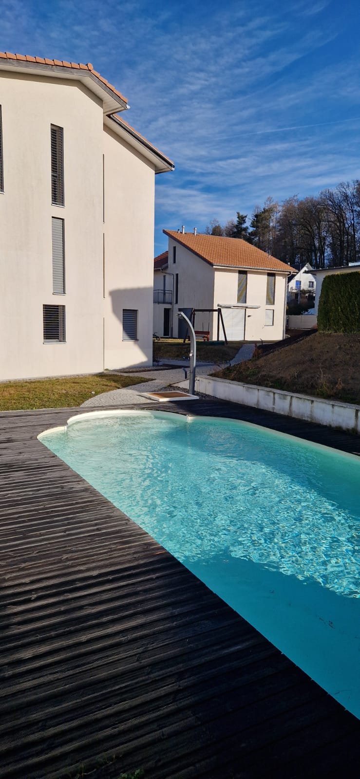 Have a great holiday or business stay at this stylish duplex. It has 4 bedrooms and a comfortable sofa bed in the living room. The residence is equipped with a seasonal, outdoor swimming pool and a playground. The apartment is very well located, on the edge of a calm village, and is a 2 minute walk from the forest; it is very well linked, by car and public transport (bus stop in front), to Murten, Bern, Fribourg, the ski stations of Schwarzsee and La Berra...