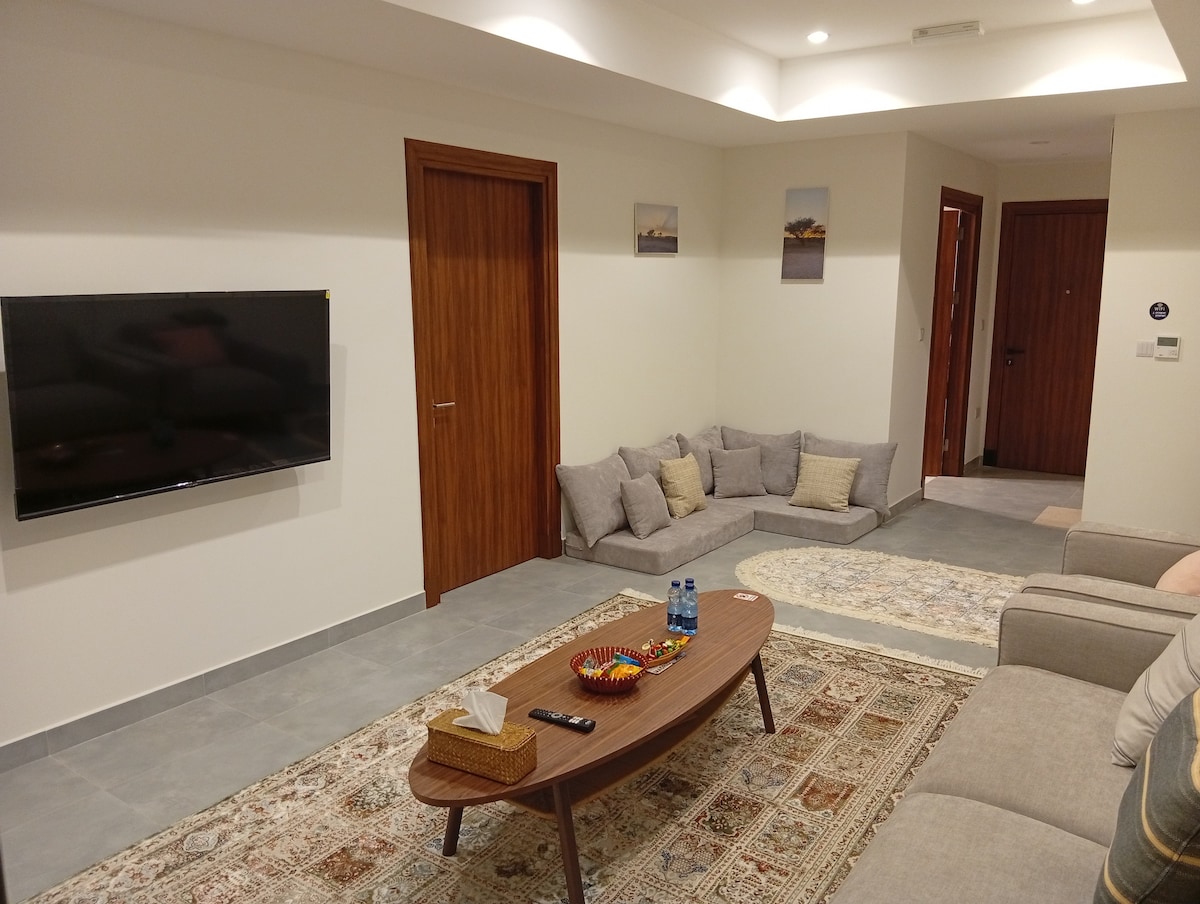 The apartment is equipped with everything you need for both short and long stays. Restaurants, supermarkets, barber shops and caffès are within a walking distance. Popular destinations by car: Muscat Airport = 20 mins The grand mosque = 10 minutes The nearest beach = 10 mins Mall of Oman = 5 mins