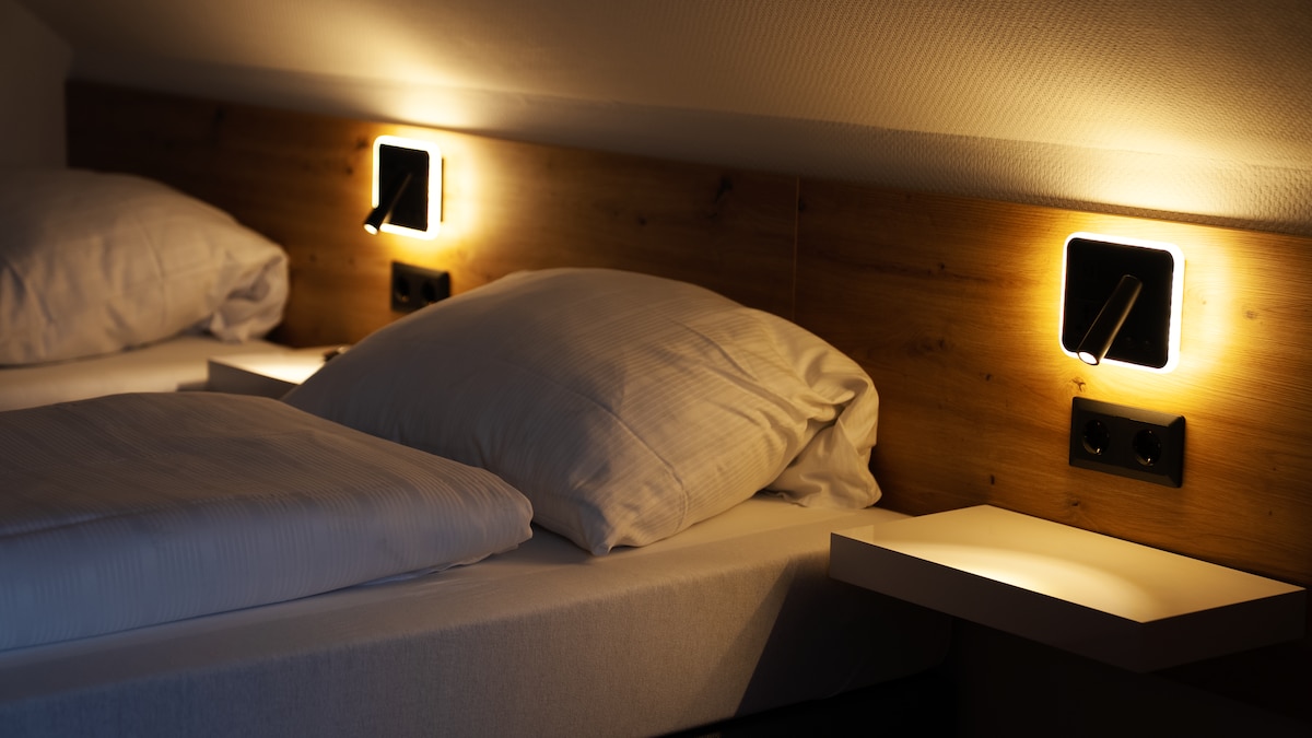 The 1-room apartment is located on the 2nd floor with separate entrance. Underfloor heating, electric shutters, triple glazed windows, HD TV, a fully equipped kitchen and much more offer a pleasant stay. The maximum number of people is 4, but then it is already a bit tight and only suitable for a short stay. The apartment is optimal, for example, for 2 adults with a child. A baby crib, a children's travel crib, as well as a high chair can be provided for a small fee (€5 per stay).