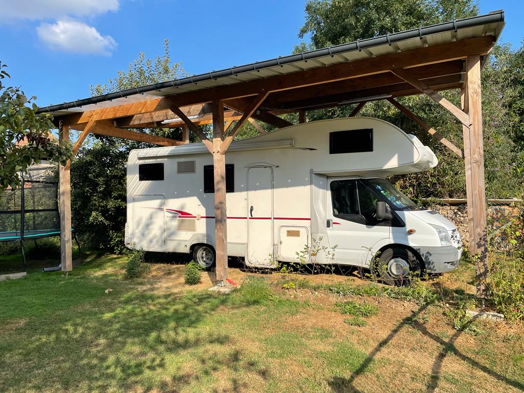 We provide you with a fully equipped wooden trailer in the orchard that borders our house For 2 or (2 children, 2 adults) it will allow you to spend a night or a week in an unusual place