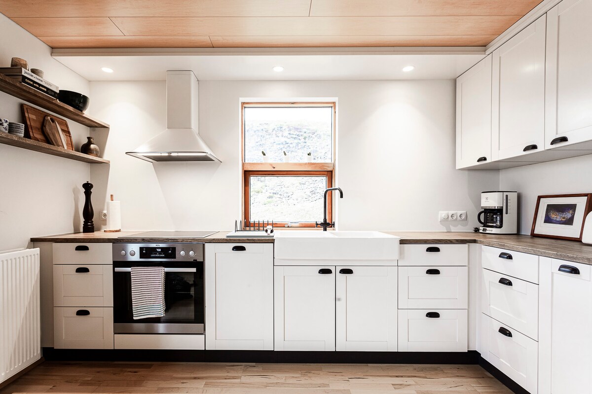 Kick back and relax in this calm, stylish space. Listen to the ocean while you enjoy the view of Vestmannaeyjar and Eyjafjallajökull, both within 18 km radius. The cottage is recently renovated, lots of space and an outdoor patio. There are horses and foals at a nearby field, you are welcome to say hello to them.