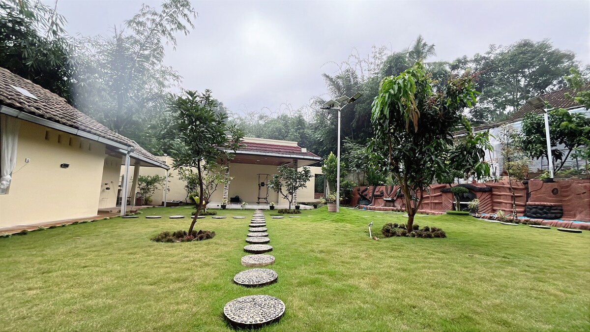 Harga yang tertera berlaku untuk satu kamar per malam Guesthouse bergaya Jawa kami menawarkan suasana nyaman dikelilingi alam hijau, dekat pusat kota dan 5 menit ke rest area🍃 Setiap kamar memiliki kamar mandi pribadi dan tempat tidur king-size, cocok untuk dua dewasa. Keluarga kecil dengan satu anak diperbolehkan. Extra bed tersedia dengan biaya tambahan Udara sejuk alami Salatiga membuat kamar nyaman tanpa AC. Tamu dapat bersantai di taman, membawa hewan peliharaan, dan menikmati suasana