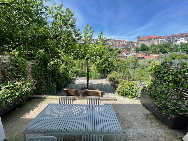 In the heart of the medieval town, next to the cathedral and town hall, animated borough with cafés, museums, shops. Not far from the banks of the Sarine. Downtown with weekly market, bakery, cafés, food trucks, - and best restaurants. In the immediate vicinity of the city centre, the SBB railway station, the university, Blue Factory and Forum Fribourg. Traffic-calmed location Excellent connections public transports, by train to Lausanne or Zurich , to the mountains, to the highway A12.