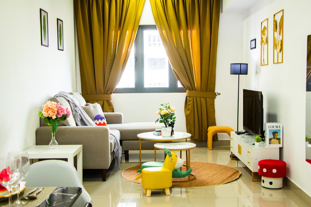 Indulge in luxury and comfort at our cozy Arte Mont Kiara unit, perfect for 4 guests. Relax in a king-sized bed or an IKEA sofa bed, and enjoy a private cinema experience with a 65" 4K UHD Smart TV and Sonos home theatre. Stream Netflix, Disney+, and more with high-speed Wi-Fi. Have fun with free PS4 games like EA FC24 and Overcooked. Light cooking is easy with a stove, microwave, and toaster. Complimentary tea and coffee provided, with snacks available for purchase from our mini bar
