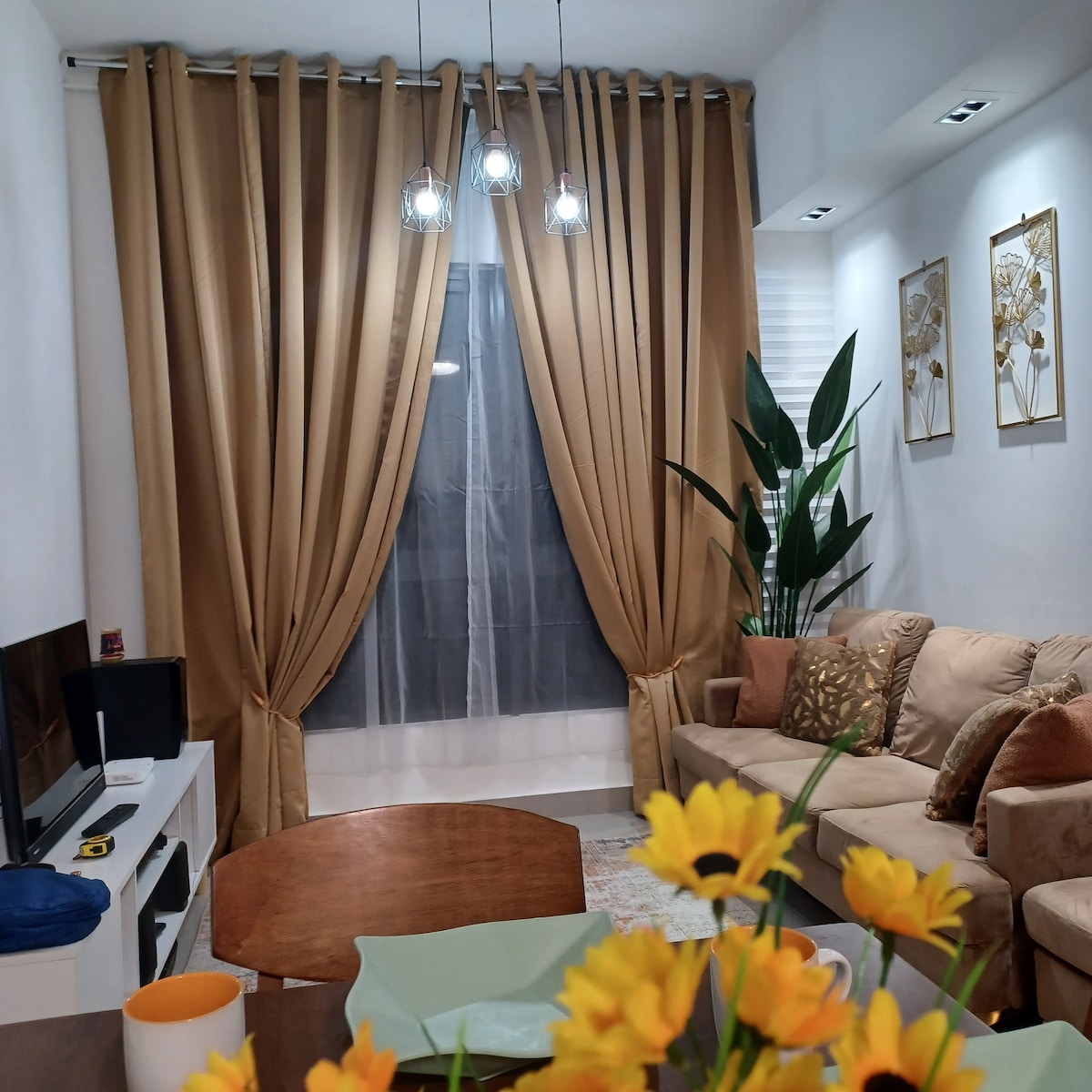 King Suite Home is 1 bedroom Apartment includes a full kitchen with refrigerator and microwave. These are family style suite with separated bedrooms, a living room and a dining area. Complimentary unlimited Wifi, TV, iron&board, hair dryer, laundry washer and dryer. This King Suite Home is a AIRBNB friendly apartment and accessible to enjoy many condo facilities. Comfortable, in style living area fitted with nice Sofa bed and coffee table. Separate room with Queen bed and 4-seater dining table.