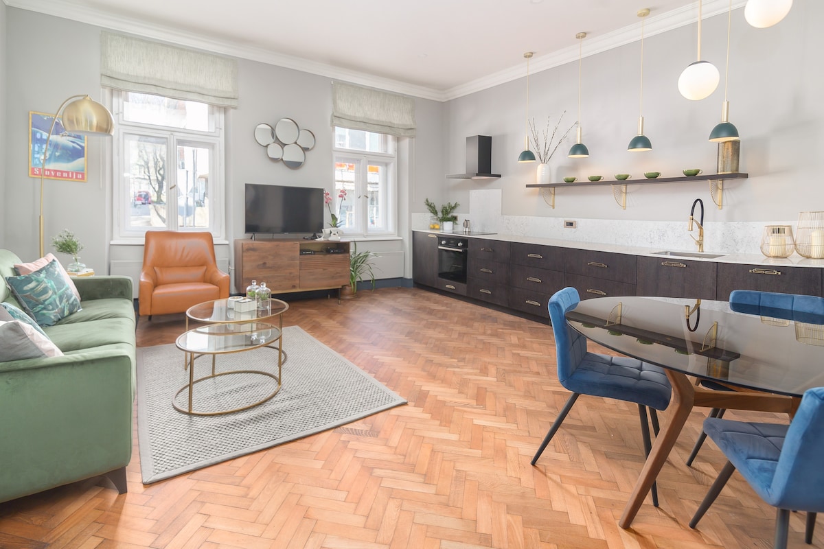 Riverside Apartment Ljubljana is a newly renovated apartment situated along the river in the heart of Ljubljana's old town, boasting views of the Ljubljanica river and Ljubljana Castle. After a restful night in our super-king Marriott bed, you can immediately start exploring the old town's landmarks, cafes and restaurants, or prepare a breakfast in our fully equipped kitchen. We are in the pedestrian zone but if you travel by car we offer a free parking in the residential garage for one car.