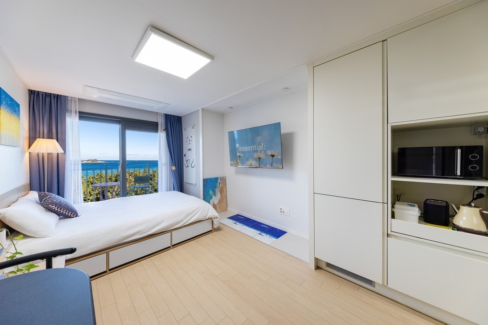 ▸Information • 2nd floor location, use stairs • Standard 2 people (maximum 2 people) • Check-in 3pm, check-out 11am • Packaged/delivery food available, no cooking •No pets • Extra bedding provided • 1 parking available per room ▸Offered • Neighborhood summary house (restaurant information) •Luggage storage service (before and after check-in) • Kundal shampoo/conditioner/body wash/foam cleansing • Pumping toothpaste/I clean hand wash • Dr. Jart+ skin/lotion • Disposable shower towels/towels • Refrigerator/microwave/coffee pot • Netflix/YouTube/WiFi/Dyson Air Lab • Bowl/ cup/ chopsticks/ spoon/ wine cup/ wine opener ▸Additional details • Noise-sensitive between rooms (noise restriction time 22-07 hours) • No smoking in the entire building • Parking lot and stair entrance rotating cctv operation • Use of Sesco disinfection and quarantine service (monthly) • No visitors other than the number of people reserved ▸Location • 30-second walk from Bongpo Beach • 10 minutes from Sokcho Jungang Market • Taxi stand next to the bus stop in front of the accommodation • 85, Toseong-ro, Toseong-myeon, Goseong-gun, Gangwon-do