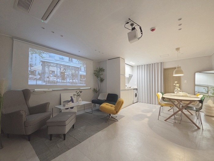 [Lian STAY] # 1st floor private courtyard # 1st floor staircase # Beam projector # Room 2 queen beds 3 # Seomyeon # Jeonpo