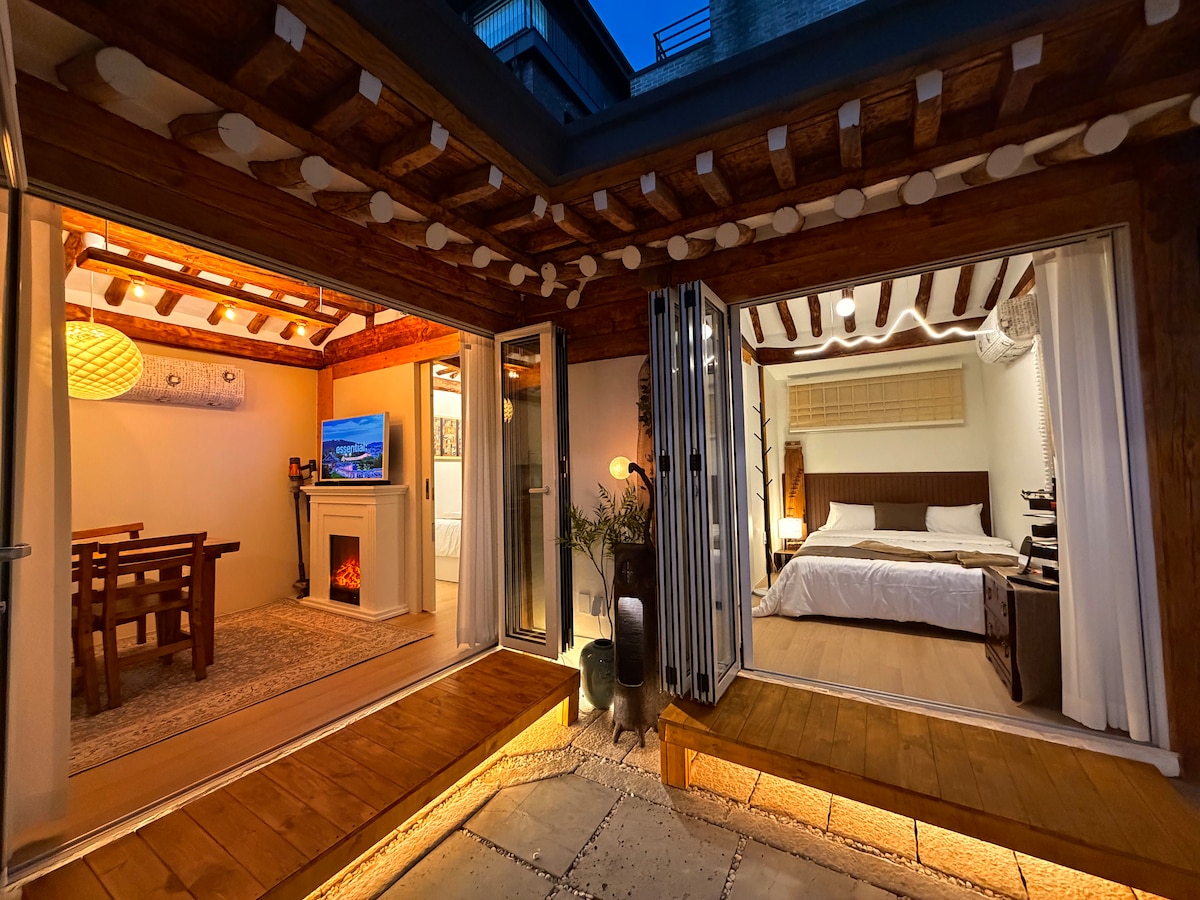 Entire space on the 1st and 2nd floors, available for 2-8 people, 2 bedrooms (2 queen beds), 2 large living rooms (2 queen sofa beds), 2 bathrooms, 1 kitchen (fully equipped with cooking utensils), 12-seat large walnut dining table (4m), board games, Nintendo Switch games available Kitchen-Electric rice cooker, microwave, induction, ice water purifier, coffee machine (espresso machine), cooking utensils and seasonings, tableware utensils, wine glasses, and fridge The most beautiful accommodation in downtown Seoul with a palace as a backdrop. You can enjoy healing while overlooking the undisclosed Changdeokgung Palace Garden Secret Garden area, and both the subway station and public transportation are close, so there are plenty of travel conveniences. The manager lives 10 minutes away, so he can respond to your needs at any time. **There is no parking space, but public parking is a 5-minute walk away.