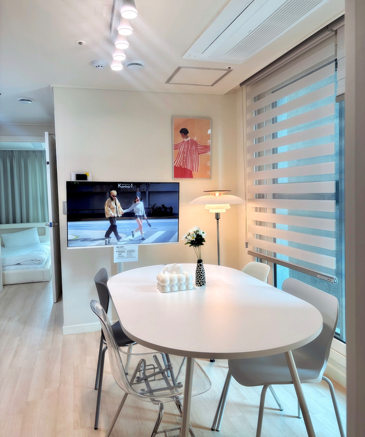 We provide a cozy and private time on the second floor of a detached house in front of the World Heritage site Jeongneung. High ceilings, abundant natural light, and sensual interiors that coexist with the 60s and modern sensibilities provide a cool and cozy experience. Amenities: -Toothpaste, shampoo, body wash (Toothbrush is not provided for environmental protection.) - Towel - Hairdryer. Internal facilities - LAN and WiFi - Beam projector- (OTT available), manual screen (OTT accounts are not provided separately, please log out after using your personal account.) - Marshall Speaker (BT/aux) - Fitness room (contact us for detailed utensils) Bedding - Queen bed/queen size mattress Kitchen facilities - Cooking utensils (cooktop, pots, pans, crockery and cutlery) - Refrigerator (Freezer X) * Various seasonings are not provided. Parking -Two in front of the accommodation (inquire in advance at the time of reservation) 1st floor cafe dodo painting - 20% off all menus