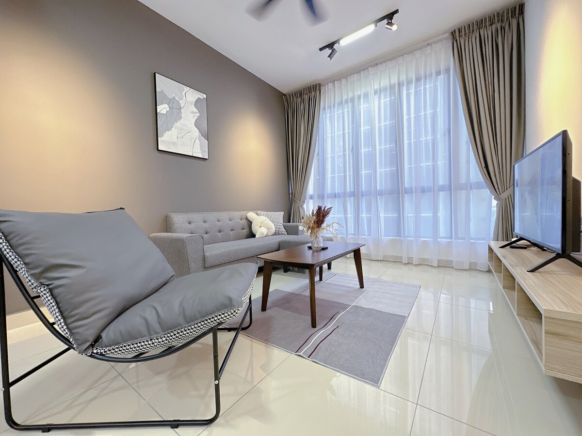 (1+1 BR & 1 bathroom) Contemporary modern and cozy condo in the heart of JB city centre. Suitable for 4pax family, friends and business group. **5mins to CIQ, City Square, KSL, Pelangi, and Larkin **8mins to Mid Valley Southkey, Larkin Sentral and Sentosa **15 mins drive to Paradigm mall, Sutera, Skudai and Mount Austin â 4K SmartTV â High Speed Wi-Fi, working tables with extension plug â Washer â Airconds in every rooms. â Atari console, Mahjong, and Board games. â FREE parking for 1 car