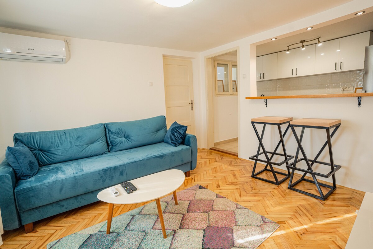 📍 LOCATION - 50m from Knez Mihailova, Belgrade’s main pedestrian street. 🏠 ABOUT – Stylish 65 sqm duplex for 4 guests (+ baby crib). Ground floor: open living area with kitchen, dining, sofa, TV, and full bathroom with shower. Loft: cozy bedroom with king-size bed, closets, TV. 🌿 LOVELY – Outdoor sitting area — a rare city-center find, perfect for morning coffee or evening wine. 🤝 HOSPITALITY – Always nearby to help. ✨ IF… you want calm and comfort in the heart of Belgrade. 😊 WELCOME
