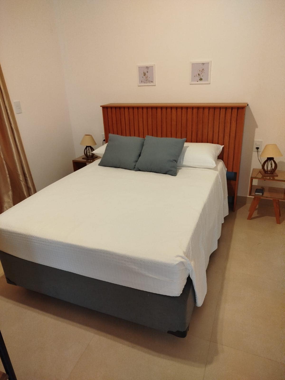 House with 3 bedrooms, one with a private bathroom, social bathroom and toilet. American kitchen, fireplace room, living room, dining room, barbecue, pizza oven, balcony, meditation space and cable TV. Gated condominium with lots of nature, a gazebo, privacy and security. Internet access via Wi-Fi (15MBs) for home office. Cleaning will be done within the COVID-19 cleaning protocol.