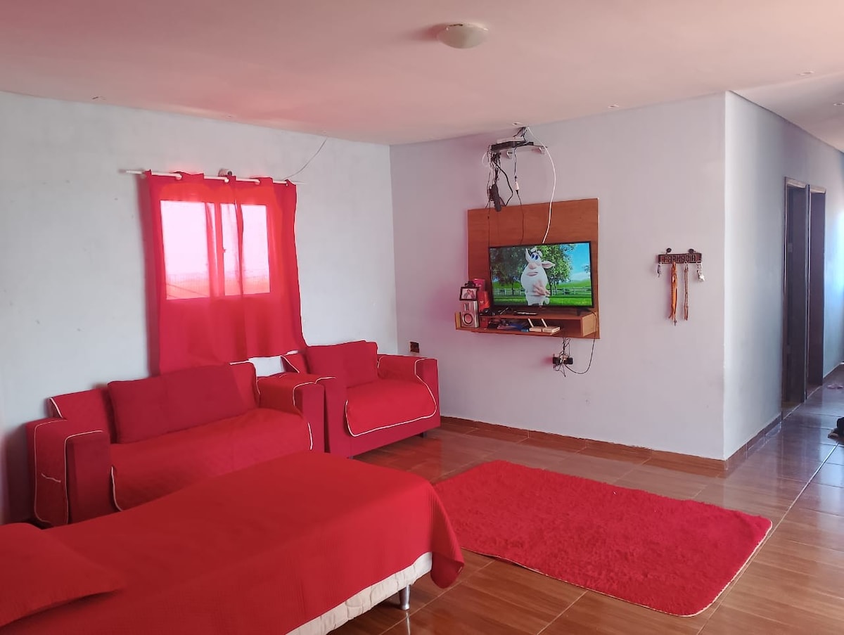 Relax with the whole family in this quiet accommodation. Spacious house located 900m from downtown, 500m from the hospital, 700m from cable car, 1km from Sesc Triunfo. Corner House, well-ventilated and wooded with plants, trees and fruits. Tranquil and cordial neighborhood.