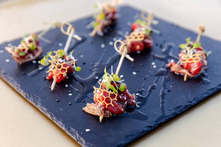 Our bespoke Cocktail package includes 12 pieces per person and a lively culinary stand on site, designed entirely in your image.
