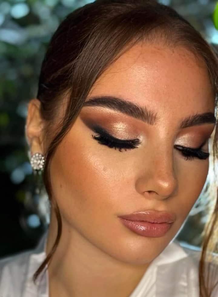 This session begins with the preparation of the skin and a long-lasting fixation made with the Brazilian armored base technique. The application of false eyelashes follows and a final touch-up is provided before the ceremony. It is ideal for those looking for an elegant and impeccable look.
