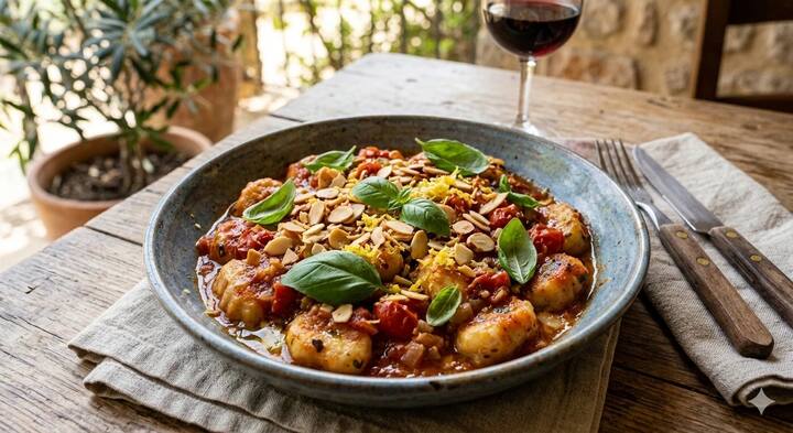Enjoy a full Mediterranean menu that includes burrata with a three-tomato salad and salsa verde, cheese-stuffed gnocchi with a tomato, almond, and basil ragout, salmon or whitefish over a carrot and asparagus purée, and a delicious tiramisu to finish.