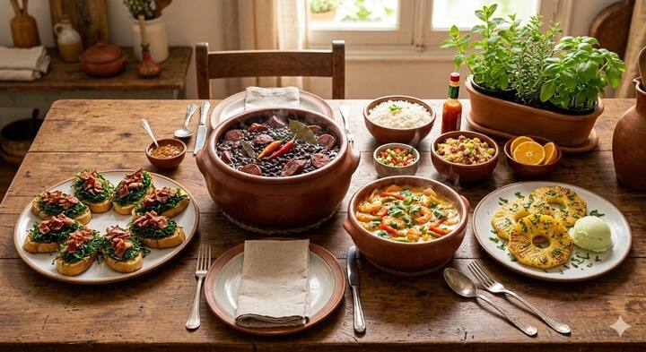 Feijoada: Made with select cuts of pork and black beans, slow-cooked with traditional spices to create a rich and unforgettable flavor. 2. Fish and Prawn Moqueca: A vibrant and aromatic stew prepared with coconut milk, fresh peppers, and tomatoes, capturing the essence of the coast.